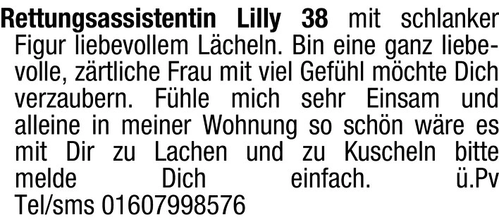 Ich fühle mich sehr einsam und alleine in meiner Wohnung. So schön wäre es mit Dir zu lachen und zu kuscheln.