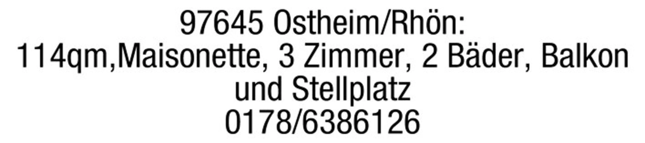 97645 Ostheim/Rhn:114qm,Maisonette, 3 Zimmer, 2 Bder, Balkon und Stellplatz 0178/6386126