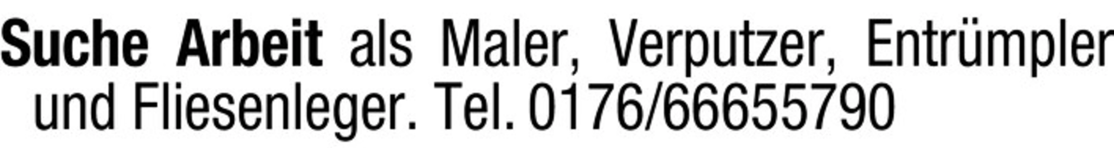 Suche Arbeit als Maler, Verputzer, Enttrümmler und Fliesenleger.