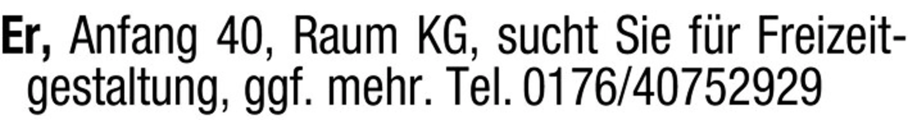Er, Anfang 40, Raum KG, sucht Sie für Freizeitgestaltung, ggf. mehr.
