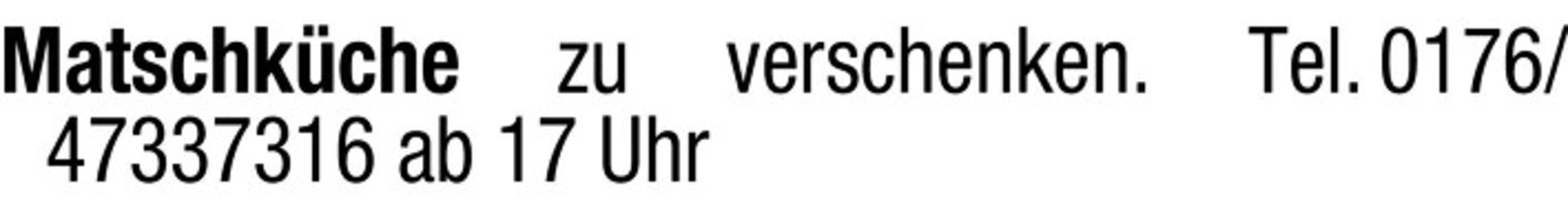 Matschkche ab 17 Uhr, Tel. 0176/47337316