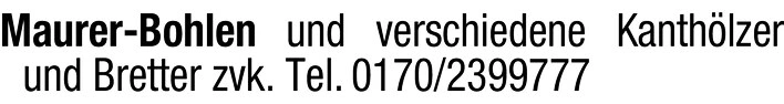 Maurer-Bohlen und Kantholz sowie Bretter zu verkaufen