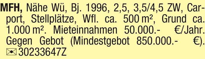 Mehrfamilienhaus 1996 mit Mieteinnahmen 50.000 Euro