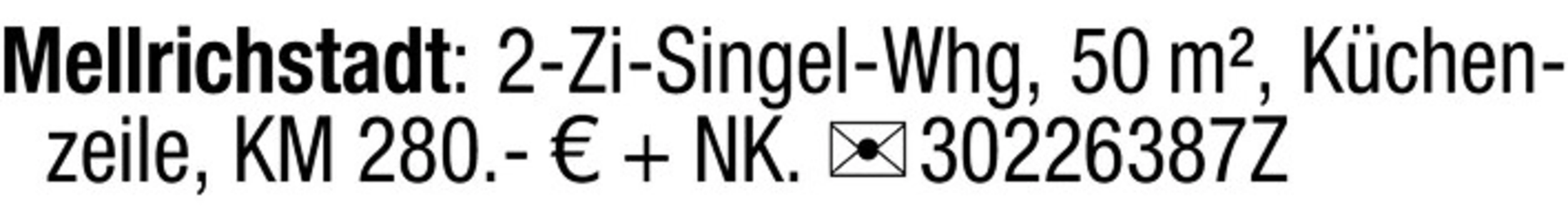Mellrichstadt: 2-Zi-Singel-Whg, 50 m, Kchenzeile, KM 280.- NK. Chiffre 30226387
