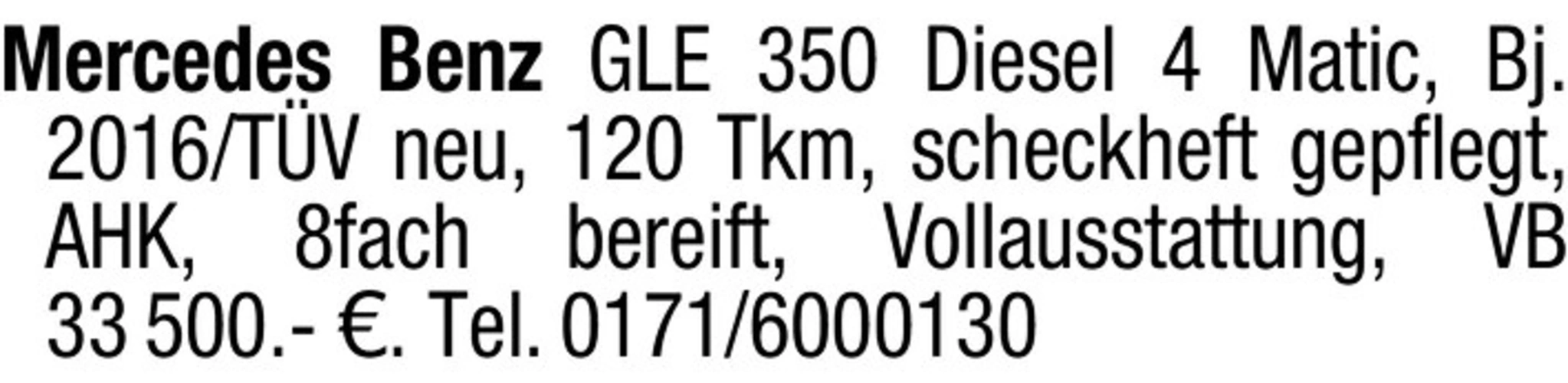 Mercedes Benz GLE 350 Diesel, Baujahr 2016