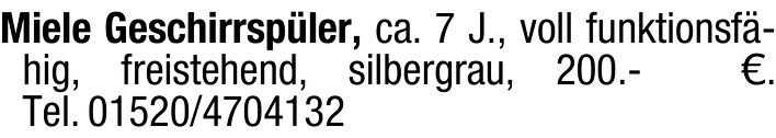 Miele Geschirrspüler silbergrau sieben Jahre alt