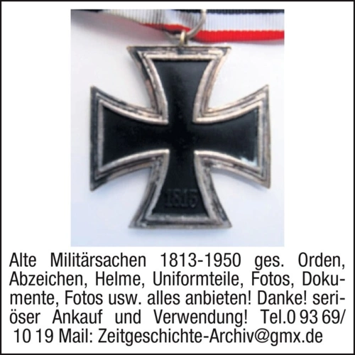 Alte Militärsachen 1813-1950 gesucht. Orden, Abzeichen, Helme, Uniformteile, Fotos, Dokumente, Fotos usw. alles anbieten! Danke! Seriöser Ankauf und Verwendung!
