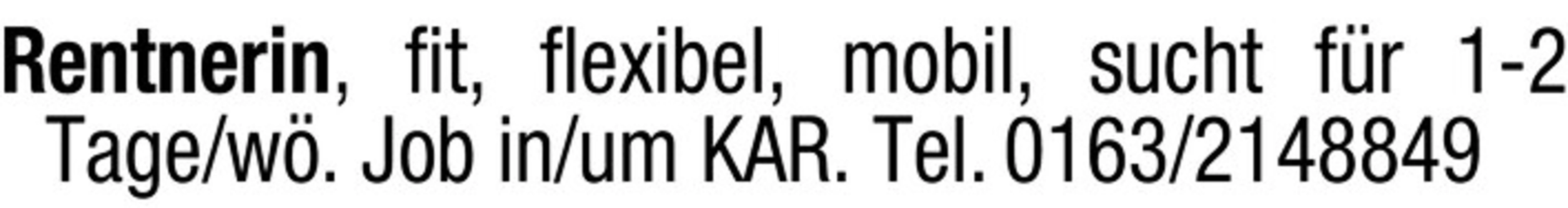 Rentnerin, fit, flexibel, mobil, sucht fr 1-2 Tage/w. Job in/um KAR. Tel. 0163/2148849