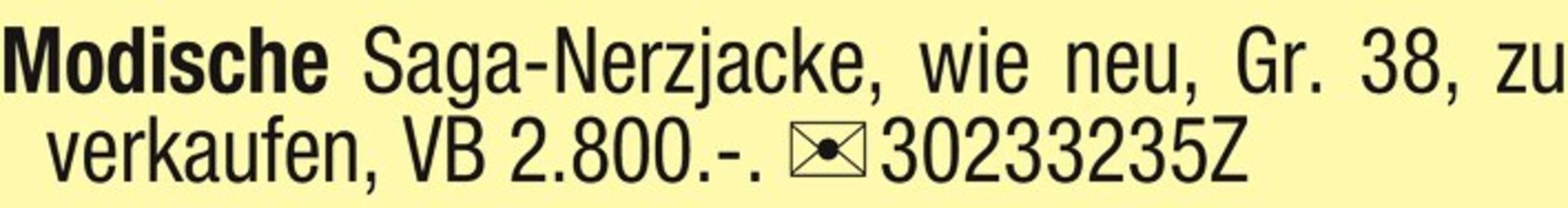 Modische Saga-Nerzjacke, wie neu, Gr. 38, zu verkaufen, VB 2.800.-. Chiffre 30233235