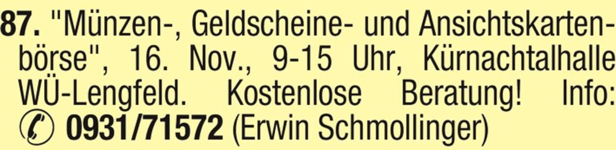 Info: 0931/71572 (Erwin Schmollinger)