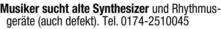 Musiker sucht alte Synthesizer und Rhythmusgeräte (auch defekt).