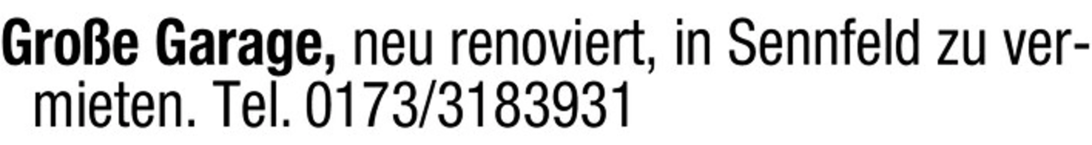 Groe Garage, neu renoviert, in Sennfeld zu vermieten.