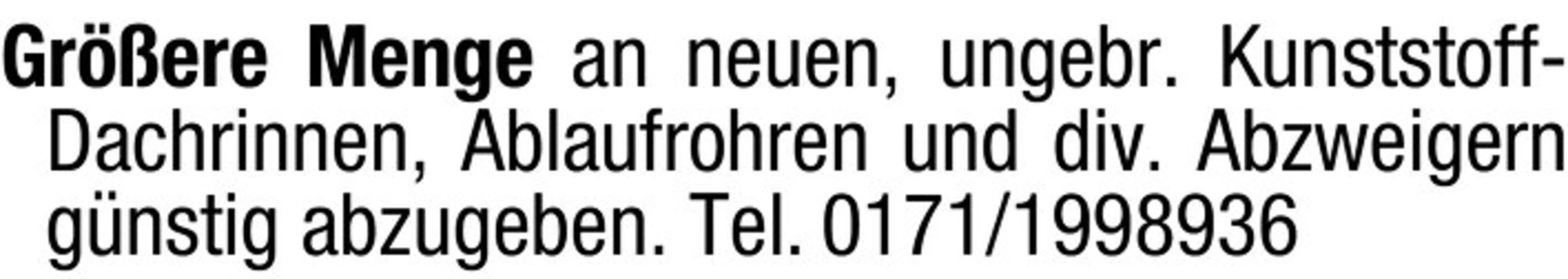 Grere Menge an neuen, ungebr. Kunststoff-Dachrinnen, Ablaufrohren und div. Abzweigern gnstig abzugeben.