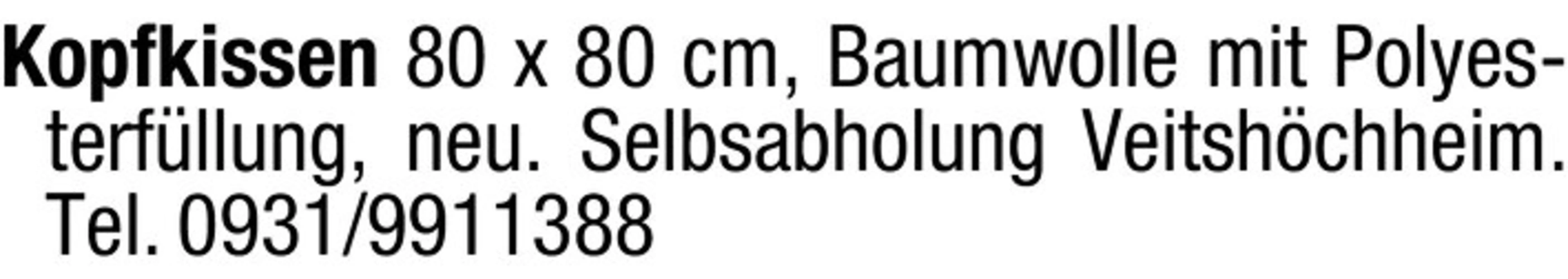 text Kopfkissen 80 x 80 cm, Baumwolle mit Polyesterfllung, neu. Selbsabholung Veitshchheim. Tel. 0931/9911388