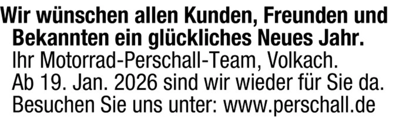 Neujahrsgrüße vom Motorrad-Perschall-Team Volkach und Wiederöffnung 19. Januar 2026