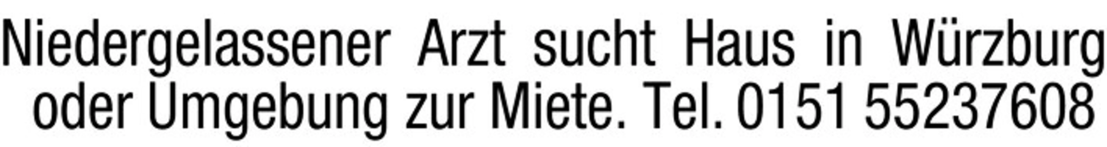 Niedergelassener Arzt sucht Haus in Wrzburg oder Umgebung zur Miete. Tel. 0151 55237608