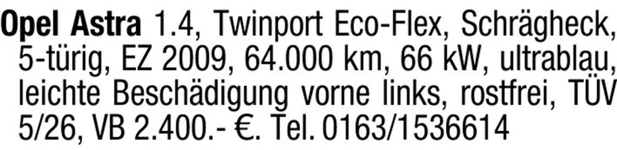 Opel Astra 1.4, EZ 2009, 64.000 km