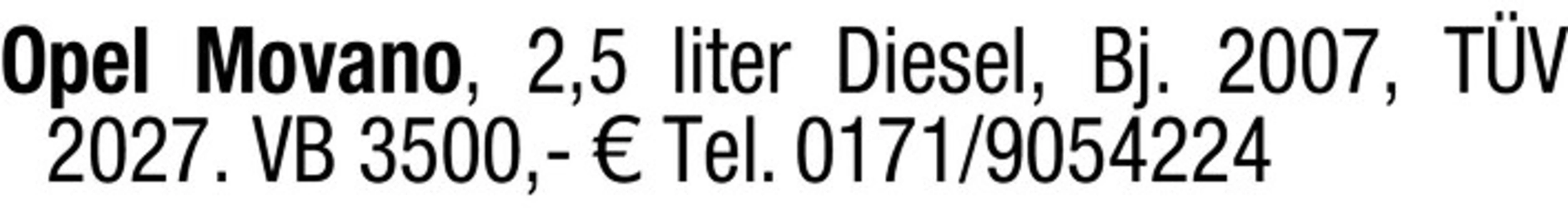 Opel Movano, 2,5 liter Diesel, Bj. 2007, TV 2027. VB 3500,- Tel. 0171/9054224