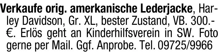 Verkaufe orig. amerikanische Lederjacke, Harley Davidson, Gr. XL, bester Zustand, VB. 300.-