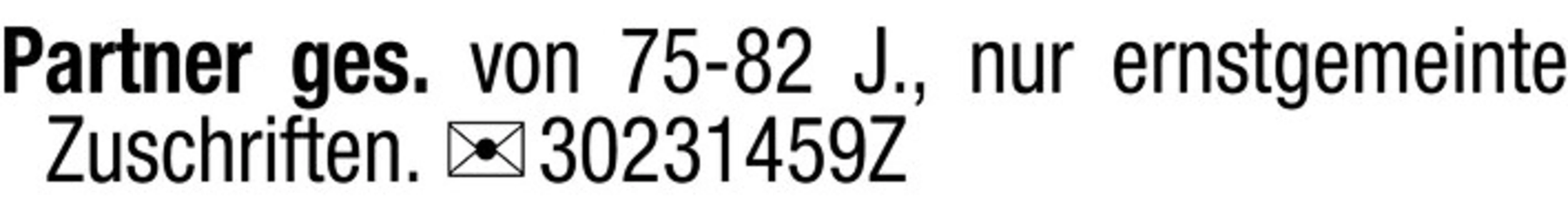 Partner ges. von 75-82 J., nur ernstgemeinte Zuschriften. Chiffre 30231459