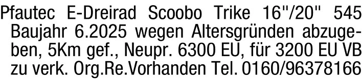 Pfautec E-Dreirad Scoobo Trike 16"/20" kaum gefahren