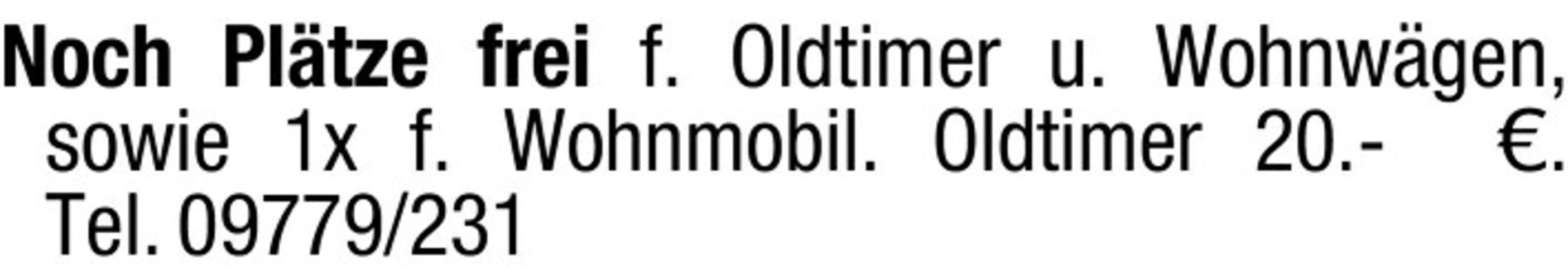 Noch Plätze frei für Oldtimer und Wohnwagen, sowie 1x für Wohnmobil. Oldtimer 20.- . Tel. 09779/231
