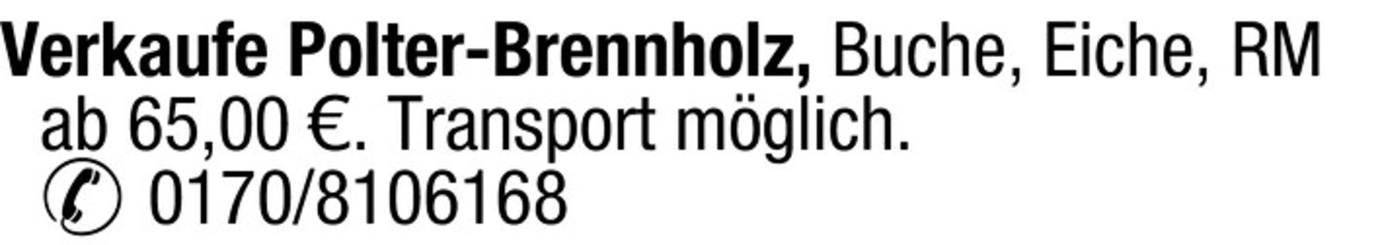 Verkaufe Polter-Brennholz, Buche, Eiche, RM ab 65,00 . Transport mglich. 0170/8106168