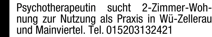 Psychotherapeutin sucht 2-Zimmer-Wohnung zur Nutzung als Praxis in W-Zellerau und Mainviertel.