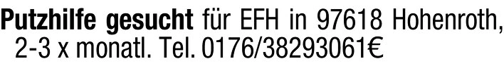 Putzhilfe gesucht für EFH in 97618 Hohenroth