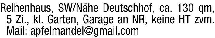 Reihenhaus, Südwest/Nähe Deutschhof, ca. 130 qm, 5 Zimmer, kleiner Garten, Garage an Nachbargrundstück, keine Haustiere zum Mitnehmen.