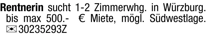 Gesuchsanzeige: Wohnung für Rentnerin