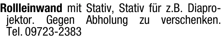 Rollleinwand mit Stativ, Stativ für z.B. Diaprojektor. Gegen Abholung zu verschenken.