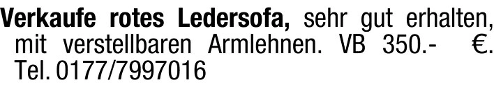 Verkaufe rotes Ledersofa, sehr gut erhalten, mit verstellbaren Armlehnen.