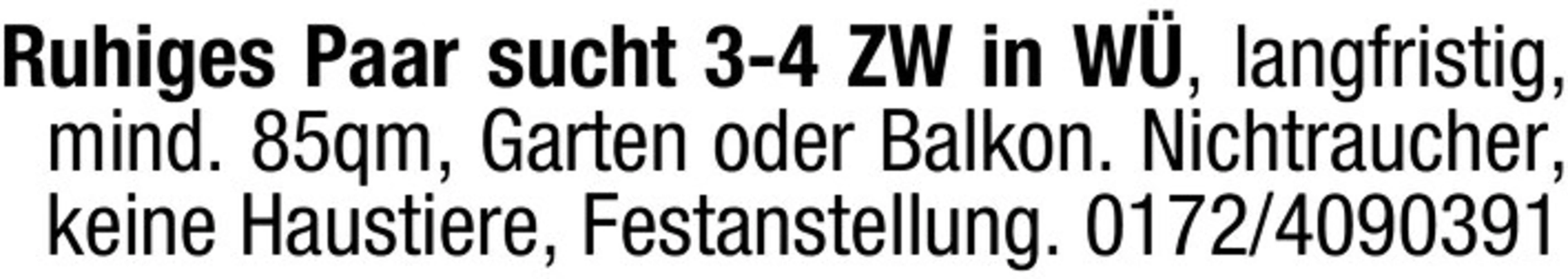 Gesuch: Ruhiges Paar sucht 3-4 Zimmer Wohnung in W.