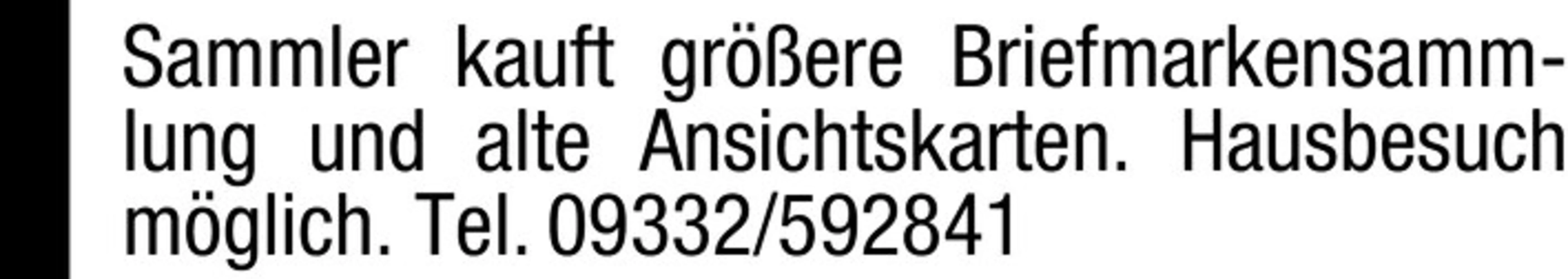 Sammler kauft grere Briefmarkensammlung und alte Ansichtskarten. Hausbesuch mglich. Tel: 09332/592841