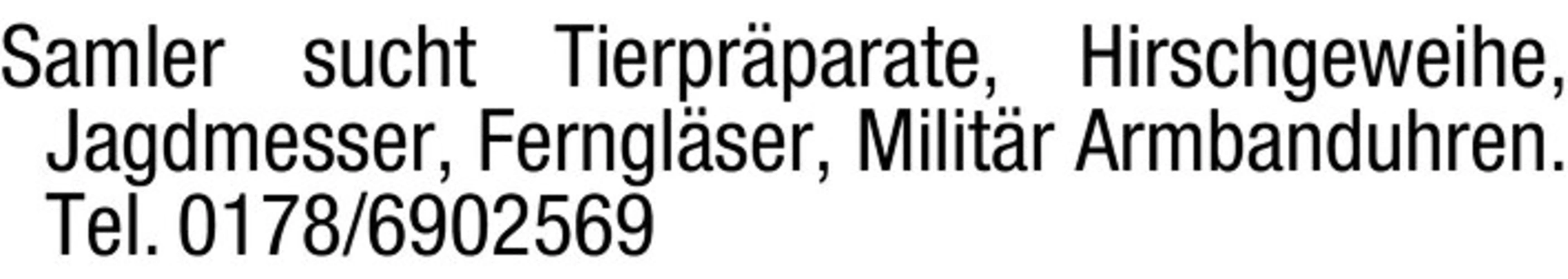 Sammler sucht Tierpräparate, Hirschgeweihe, Jagdmesser, Ferngläser, Militär Armbanduhren.