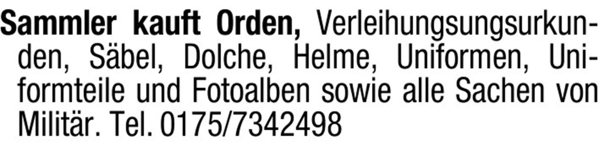 Sammler kauft Orden, Verleihungsungsurkunden, Sbel, Dolche, Helme, Uniformen, Uniformteile und Fotoalben sowie alle Sachen von Militr.
