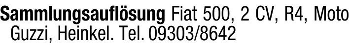 Sammlungsauflösung: Fiat 500, 2CV, R4, Moto Guzzi, Heinkel