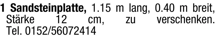 Sandsteinplatte 1,15 m × 0,40 m kostenlos abzugeben