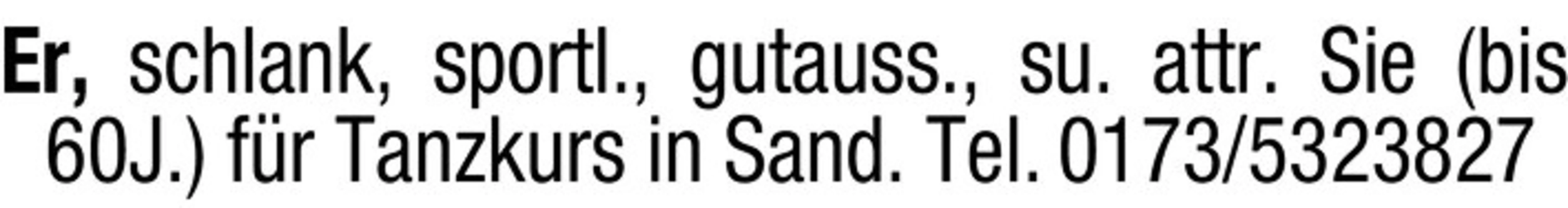 Er, schlank, sportl., gutauss., su. attr. Sie (bis 60J.) fr Tanzkurs in Sand. Tel. 0173/5323827
