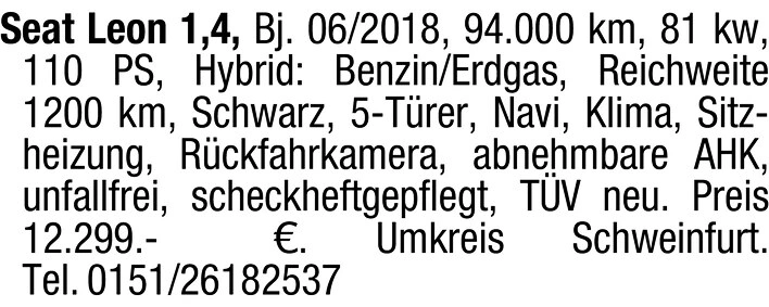 Seat Leon Hybrid Benzin/Erdgas 1200 km Reichweite