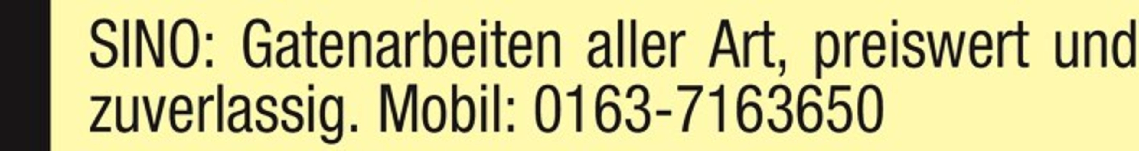 SINO: Gatenarbeiten aller Art, preiswert und zuverlassig. Mobil: 0163-7163650