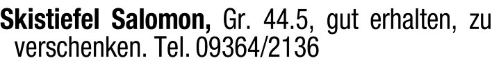 Skistiefel Salomon, Gr. 44.5, gut erhalten, zu verschenken.
