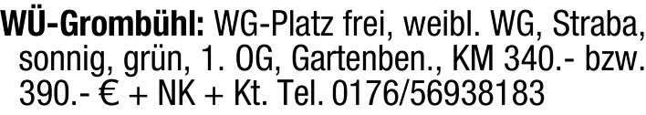 W-Grombhl: WG-Platz frei