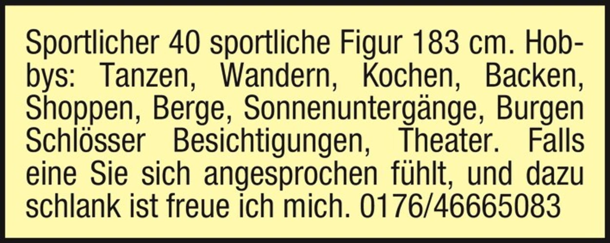 Falls Sie sich angesprochen fühlen und dazu schlank sind, freue ich mich.