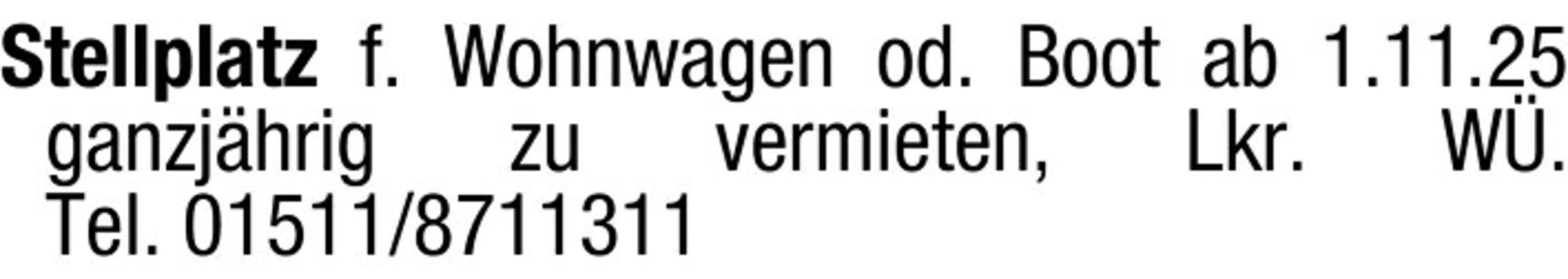 Stellplatz für Wohnwagen oder Boot ab 1.11.25