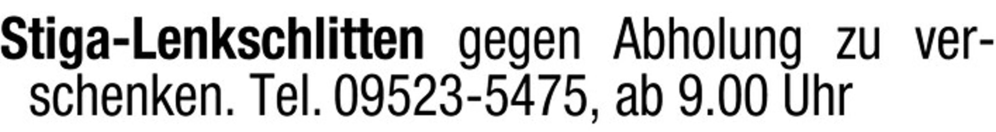 Stiga-Lenkschlitten gegen Abholung zu verschenken. Tel: 09523-5475, ab 9.00 Uhr