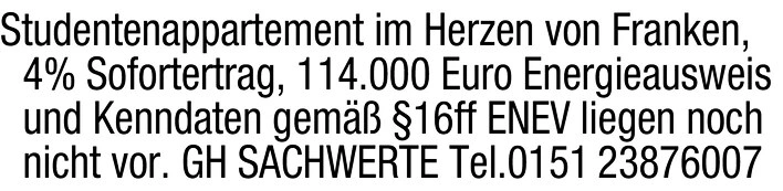 Studentenappartement im Herzen von Franken, 4% Sofortertrag, 114.000 Euro