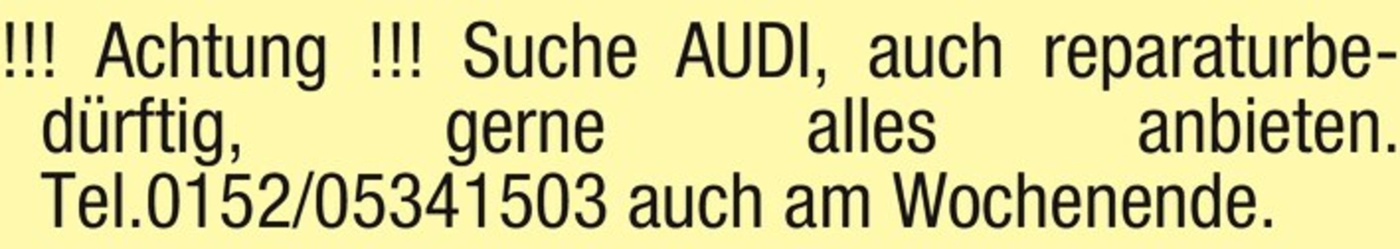!!! Achtung !!! Suche AUDI, auch reparaturbedrftig, gerne alles anbieten. Tel.0152/05341503 auch am Wochenende.