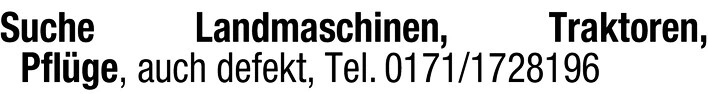 Suche Landmaschinen, Traktoren,Pflge, auch defekt, Tel. 0171/1728196